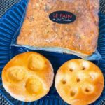 3つのパンを購入。3時間ほどドライブして辿り着いたし、できたてのパンを食べたい…ということで、近くの駐車場にて、ボンネットの上で撮影。日当たり良すぎ。