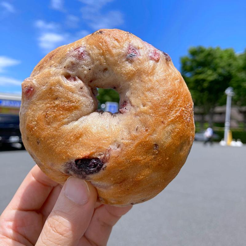 小ぶりでソフトなベーグル。ギュっと詰まったベーシックなベーグルは苦手な人でも食べやすいのでは。ブルーベリーとラズベリーが練り込まれてます。やわらか&もっちり。
