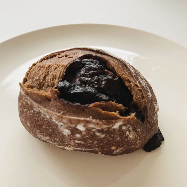 低温長時間熟成のビターなフランスパン生地に、ビターなチョコがかなり入っていて、逆にもうちょっとパン生地が食べたくなるレベル。チョコ好きにはたまらん一品