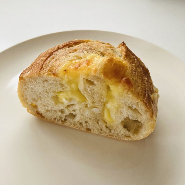 ハード系パンなんですけど、中はモチモチです。この食感、好き。チーズたっぷり - 絶品!シュークリーム 216円