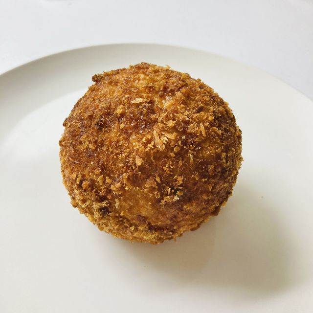 じっくり煮込んだ自家製甘口カレーに、ゴロっとチキンが入っています。ラグビーボールの形じゃなくて、まんまる。パン生地がしっかりしててカリカリ、カレーはスパイスは抑えめだけど美味しい。人気商品なのは納得! - クロワッサン 172円