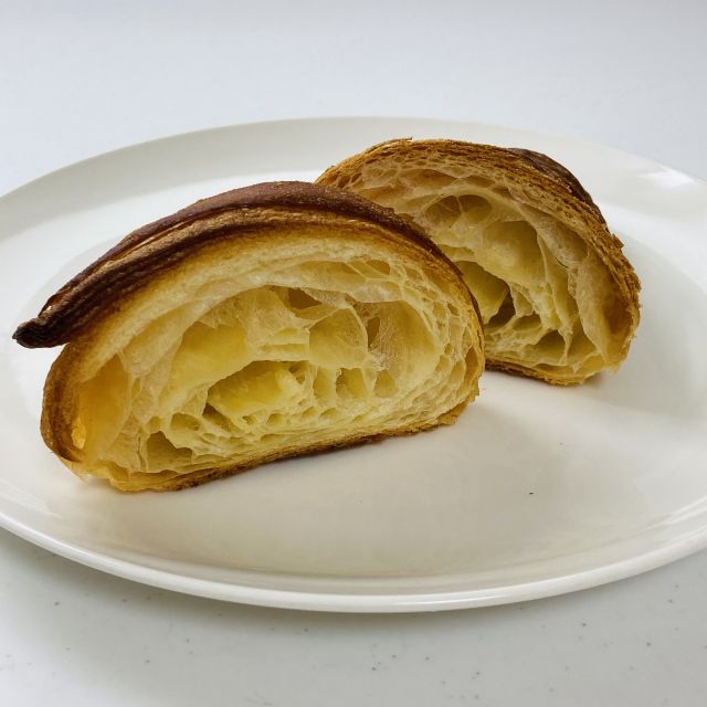 イズニ―バター100%使用(フランスのノルマンディー地方のバターだそうです)巻きが多めで、やや塩味寄り。パリッとした食感の王道クロワッサン