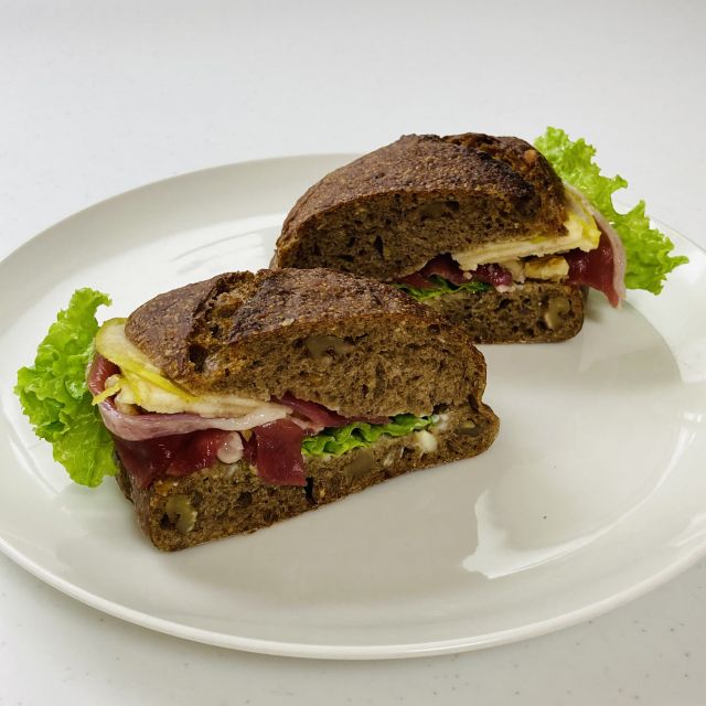青リンゴの甘酸っぱさと鴨肉のハーモニーが、今まで食べたことのない絶妙な旨さ。パン生地はクルミたっぷり入っていて食べ応えあり!