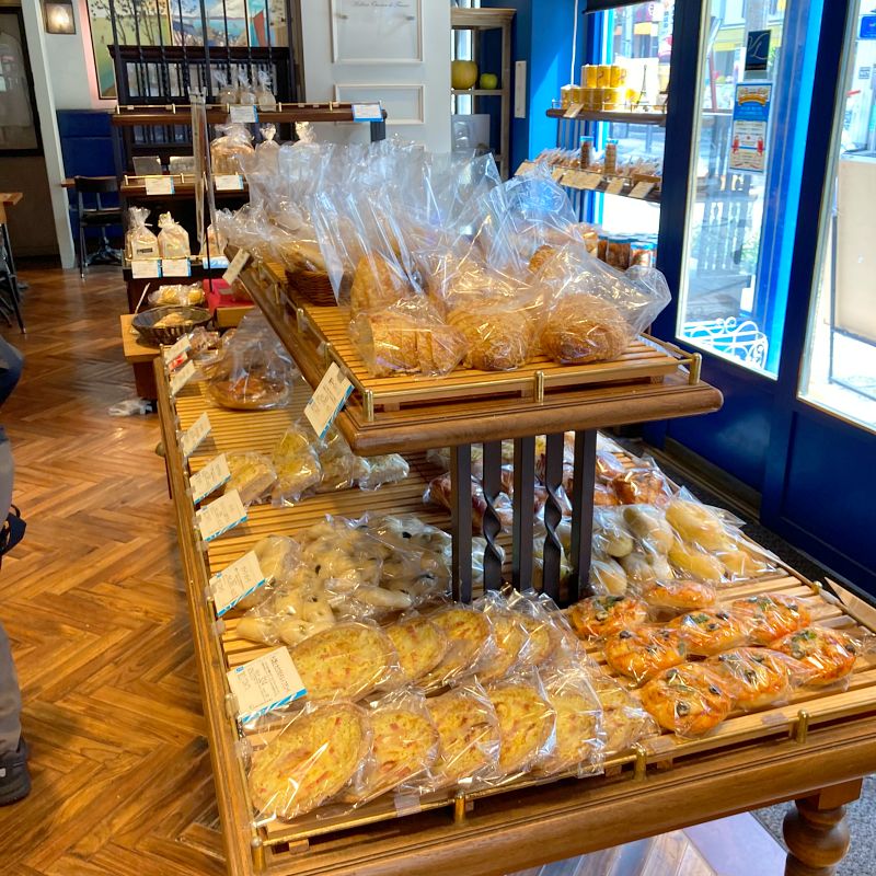 リンゴのそば粉パン、人気商品なのがわかるオリジナルな味わい。そば粉のパンは小麦粉100%のパンとまた違った風味で、日本人の味覚に合っているおいしさなのでは。そば粉系のパンは他にも、ゴルゴンゾーラが練り込まれたバゲットや、クロワッサン、ブリオッシュ、パレ・ブルトンというフランスのお菓子など様々。イートインもできるので、お近くに行った際はぜひお試しを〜。