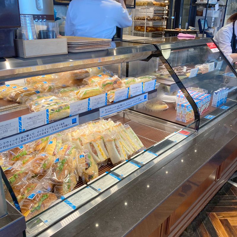 フォカッチャやヴィエノワのサンド、食パンのサンドイッチなど。奥ではスタッフさんが次の仕込みをしているのがよく見えます。