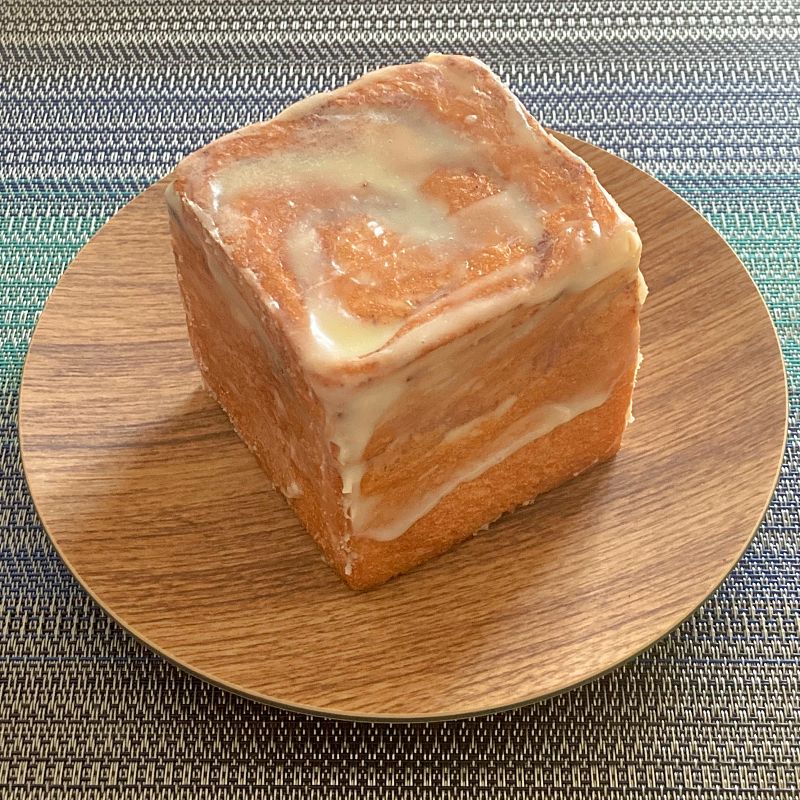 外のアイシングは練乳のようにクリーミー。クラムは意外にしっかりと焼き上げられていました。スクエアなシナモンロールは珍しいですよね。優しい味がする生地に巻き込まれているシナモンは、ガッツリではないけれどしっかり長く香るシナモン。