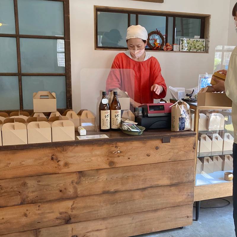 店内にはおいしそうなお米やしょうゆ、絵本なども販売。前のお客さんを待っている時に眺めていると、買いたい誘惑にかられます。シナモンロールは1個入り・2個入り・3個入りが用意されていて、すでに箱に包装済み。今日のラインナップから、食べたい種類のシナモンロールを選んで、それ以外に箱の中にどの種類が入っているのかを聞いて購入するシステム。