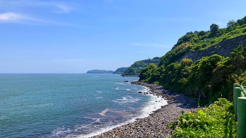 4点購入(追加で、お世話になってる人に玄米トーストをおみやげに)。パンのいい香りを漂わせながら帰路につく途中、135号線沿いに駐車場があったので休憩がてら遅めのランチに。相模湾を一望できる絶景スポット。
