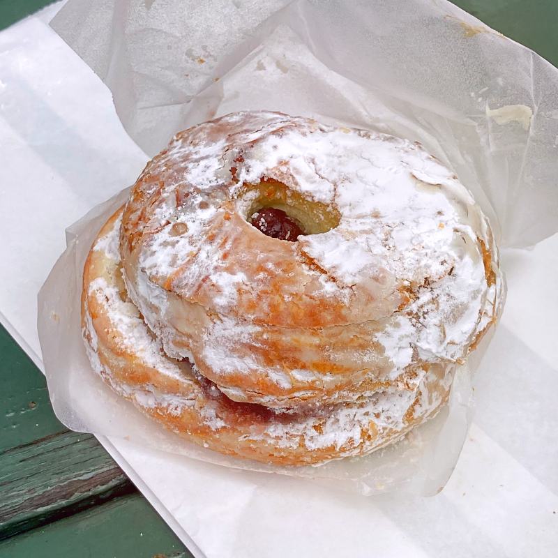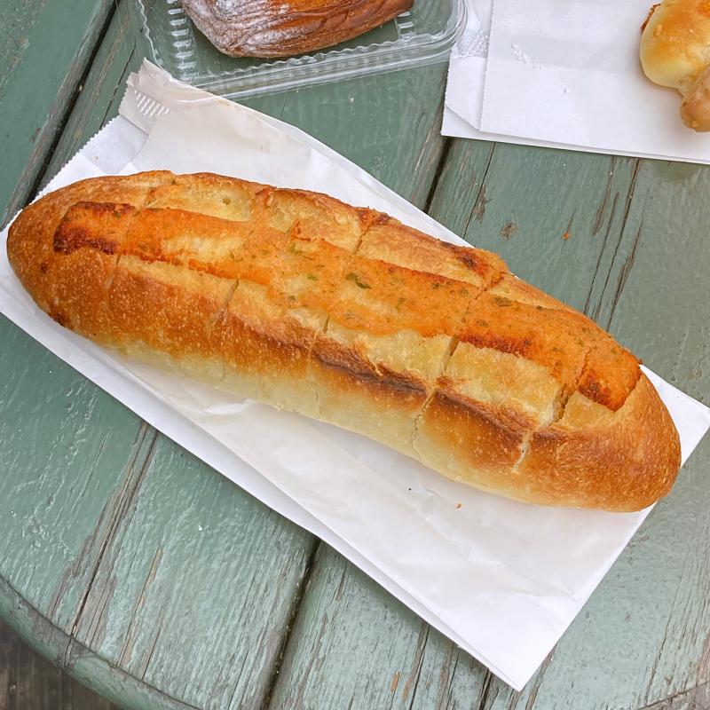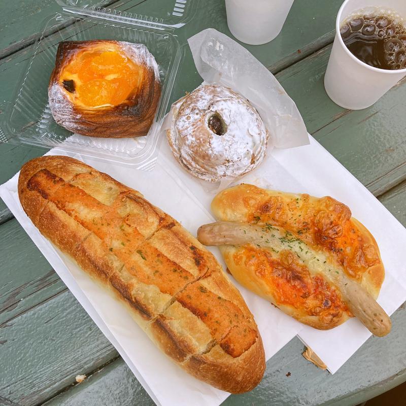 天気は残念ながらどんよりとした曇りでしたが、雨が降っちゃうとテラス席で焼きたてを満喫できてないので一安心。おとなりのテーブルは、同じくパン屋巡りが好きそうなカップルや、ご近所の小学生の友達同士でワイワイと。