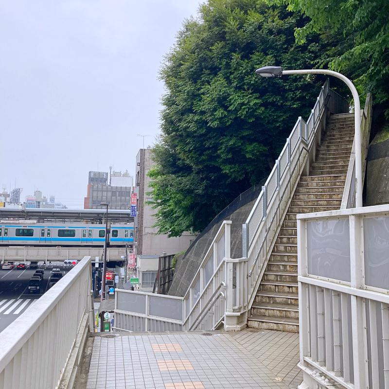 西日暮里駅前歩道橋にあがると、そこから西日暮里駅公園に続く登り階段を発見。木々が生い茂る中に入っていくと…