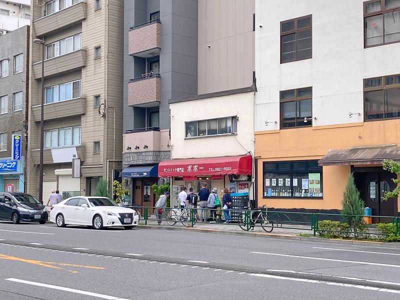西日暮里にあるサンドイッチ専門店「ポポー」に行ってきました。JR西日暮里駅から徒歩2分くらい、大通り沿いにある昭和48年創業の老舗店です。ボリューム良し・コスパ良し・味良し!の人気店と聞いて、朝イチに行ってきました。