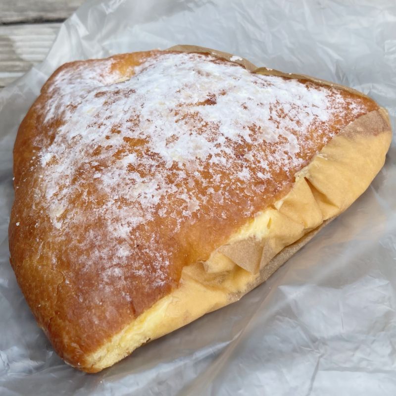 フランス・サントロペ地方の名物パン。やわらかく黄色いブリオッシュ生地に濃厚なカスタード、上から粉砂糖がかかっていて私的には甘めでしたが、歩き疲れた身体に染み渡りました。店員さんのオススメです。