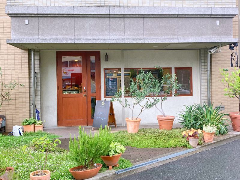 お店の場所は、地下鉄谷町線・中崎町駅から徒歩2〜3分ほど。9時開店の10分前くらいに到着。通りに面したお庭の造りや、看板や入り口のランプがかわいい。