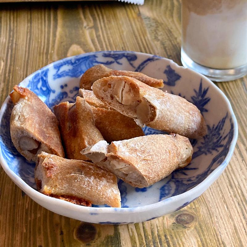 細長いバトン、食べやすいようにカットしてくれました。香ばしいいぶりがっことナッツが合いすぎて、和洋の組み合わせがおいしい。噛みごたえのあるパンに、パリポリの食感も楽しい。