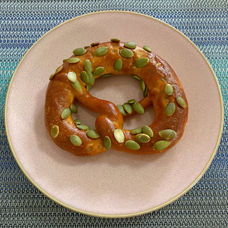 本格プレッツェルに、サクサクのかぼちゃの種がたくさん。甘みも感じるギュっと詰まった生地。噛めば噛むほど味わい深い。プレッツェルは他にも、プレーン、チーズ、大きめの「どでかプレッツェル」がありました。
