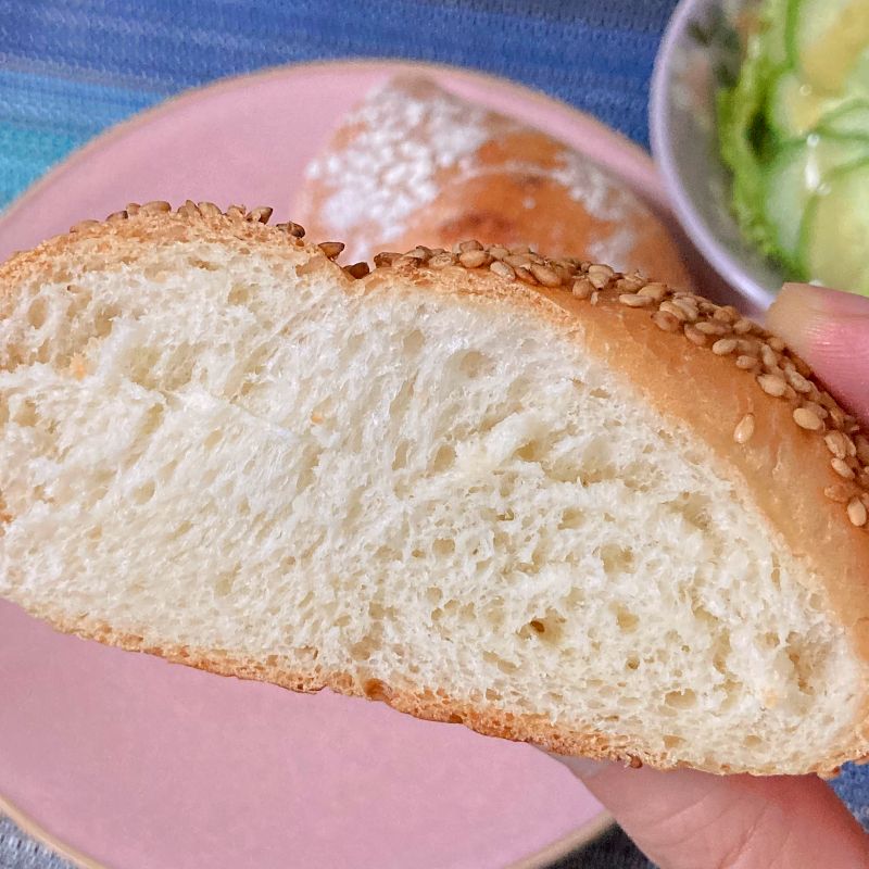 切り口はこんな感じ。ゴマがたくさんでポロポロ落ちる(笑)横に切ってハムやチーズを挟んだりジャムを塗ったり。