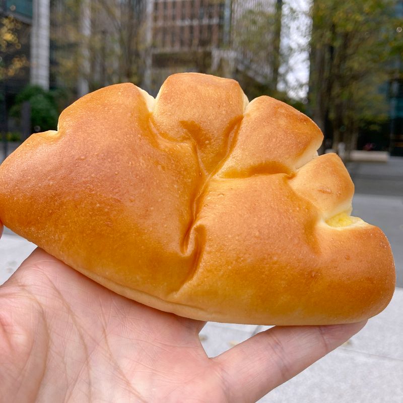 オーソドックスな手の形をした平たいクリームパン。皮が薄目に焼き上がっていて、隙間なく端までカスタードクリームが詰まってます。このクリームがおいしくて、ちょうどよい甘さ。そして後味がよかったです。