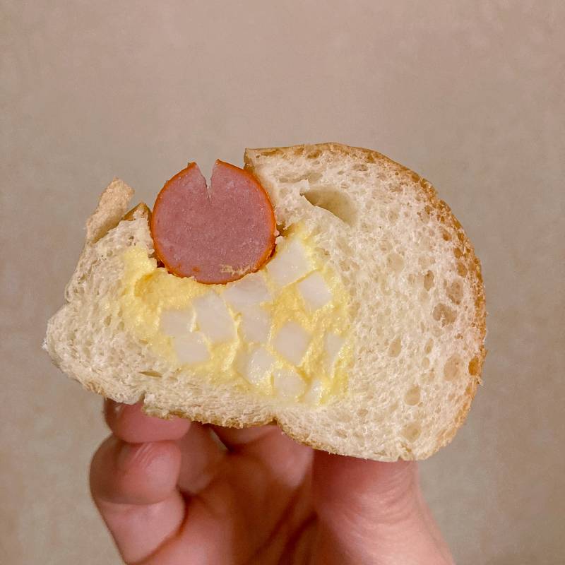 若干しわが寄ってスカーフェイスのようになってしまいましたが…ふんわりとしていて少し甘味があるコッペパンに、懐かしの赤ウインナーとたまごサラダの懐かしくてやさしい味に、目からも味覚からも癒されます。