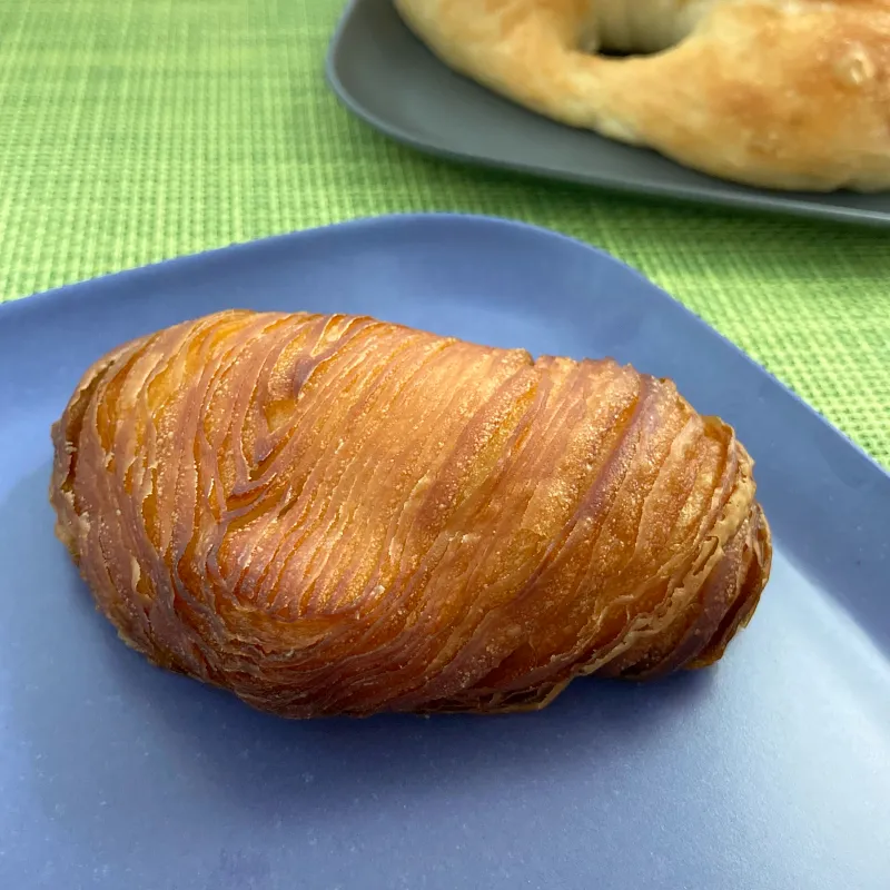 珍しい形のクロワッサン。小ぶりで、表面はしっかり焼きあがっていて、層がとっても細かい。