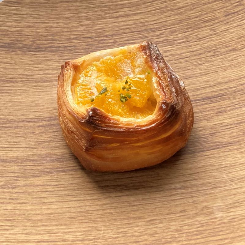 テイクアウトにはオレンジを選んでお土産にしました。マコさんからは「オレンジがジューシーで爽やか」との感想。デニッシュのバターが濃厚な分、上に乗せるのは甘酸っぱい果物が合うのは鉄板ですね。
