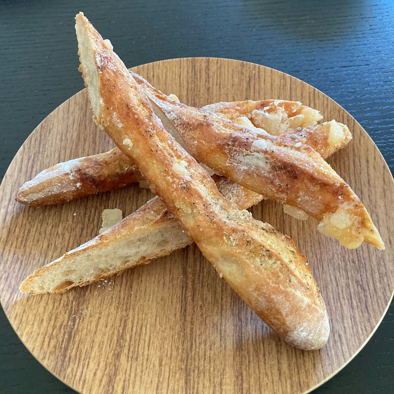 看板商品で、50㎝くらいはあるんじゃないかという長〜いハード系パン。セージバターとはちみつの甘じょっぱい味とカリカリの食感がクセになります。かためなので歯には要注意です!抵抗がなければですが、かたいのが苦手な方はヨーロッパ流にコーヒーにつけて食べるのもアリ。