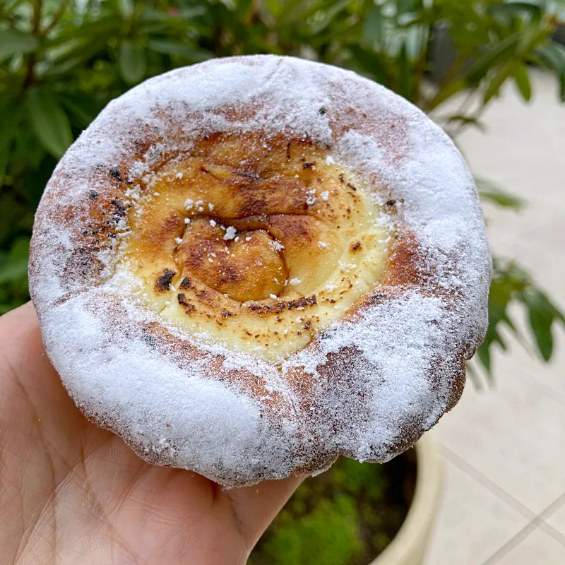 ブルターニュ地方の上品な甘さの菓子パン。パンケーキという名前からしっとり系のパンかと思いきや、軽めのブリオッシュ生地の上にクリームチーズ。