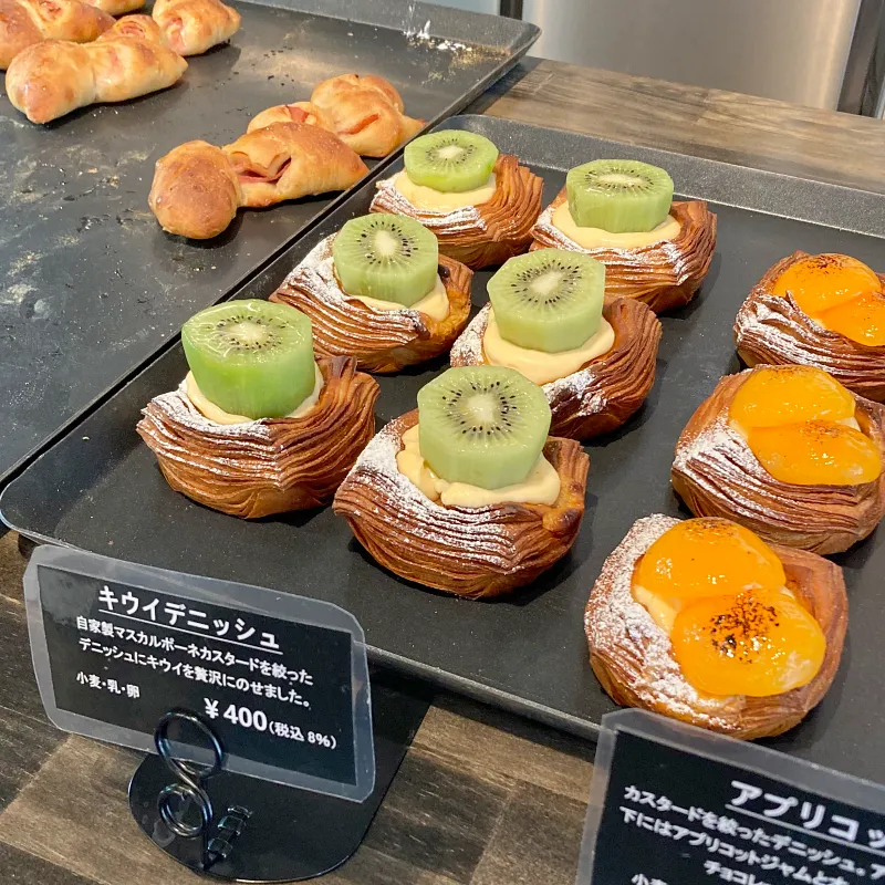 キウイデニッシュに乗ってるキウイ、分厚い! とてもおいしそうだけど、横浜まで持ち帰るには不安。。