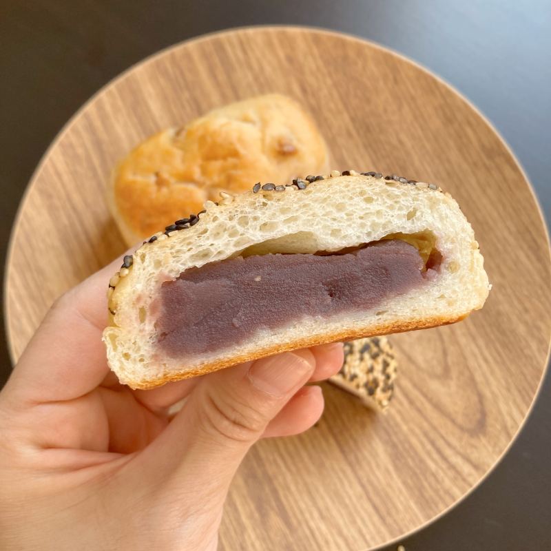 白と黒のゴマがたっぷりついてるあんぱん。きれいに練りあげられたしっかり甘めのこしあんとゴマは鉄板のおいしさですね。