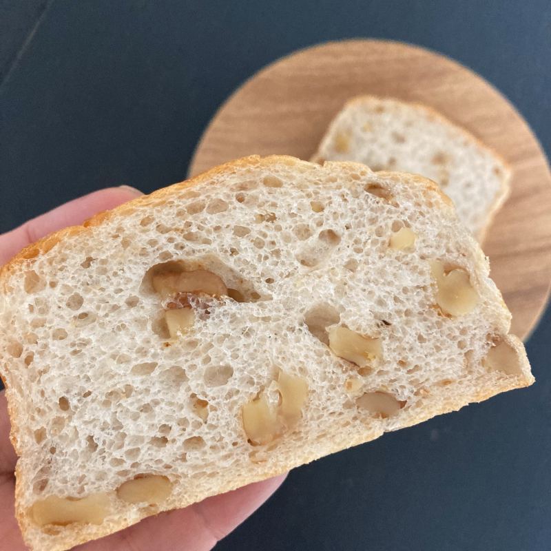 バターがふんわり香る、ミルキーでモチモチした生地。砕かれたくるみがたくさん入っています。かわいい食べきりサイズ。