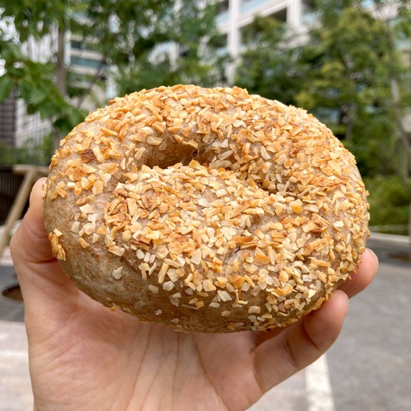 香ばしく焼けた餅のような風味で、もっちりした食感のベーグル。存在感あるあんこは軽めでうまい。クリーミーなバターとの相性も抜群でした。これはもう一度食べたい。