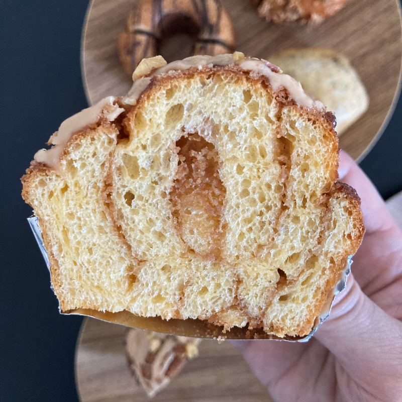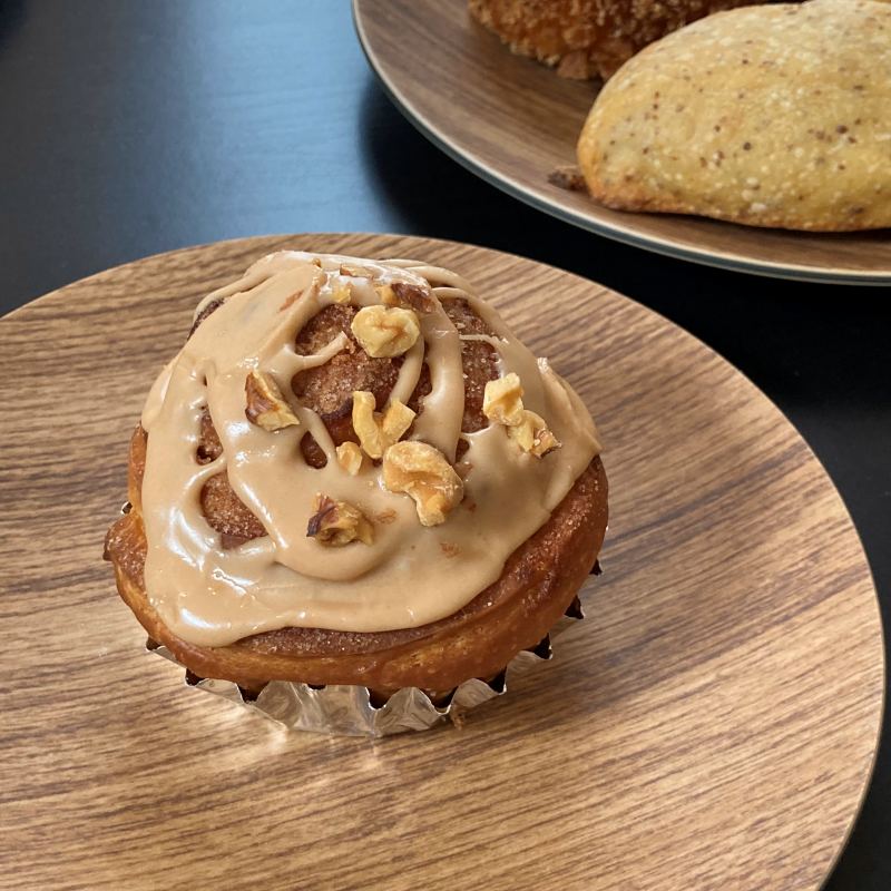 一般的なシナモンロールの生地よりふんわり、お菓子感あり。香り立つシナモンも適度でいい感じ。おいしい。