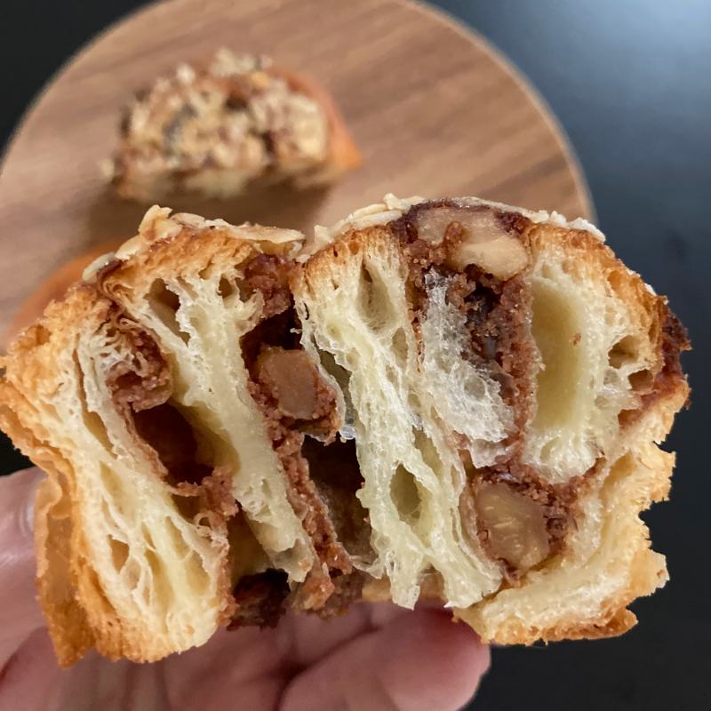 バターたっぷりで甘くないクロワッサン生地。しっかり焼き上がっていてザクザク食感。中にはビターチョコレート。オトナなパンオショコラでした。