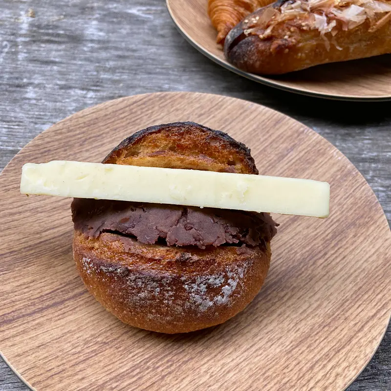 国産小豆を炊くのに手間と時間がかかるため、あんこがある時にだけ店頭に並ぶそうです。甘さの具合と砂糖そのものにもこだわった自家製あんこ。そしてこの棒状の有塩バター。存在感ありすぎ。これは絶対持ち帰りできないフォルムです(笑)。