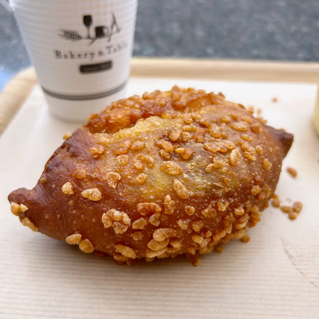 北海道産の小麦粉と米粉をブレンドした生地を米油で揚げたこだわりカレーパン。さらに中にはゆで卵が丸々一個入っています。ゆで卵の黄身を一度取り出してホワイトソースを混ぜ合わているそうです。カレーパウダーがミックスされた黄色のパン生地は、米粉が入っているのでもちっとしていて軽め。