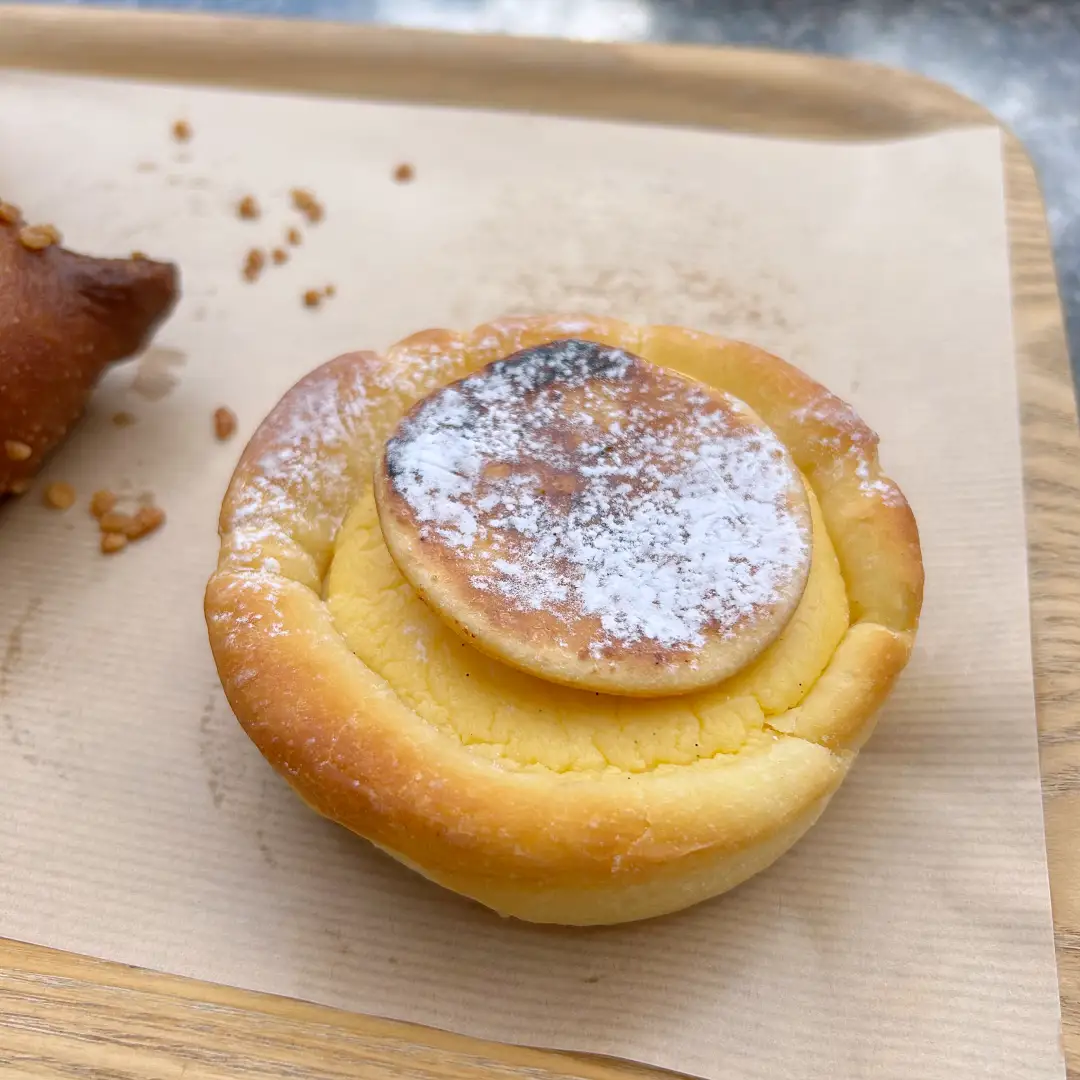 しっとり系のブリオッシュ生地に生地に、とろっと溶け出すカスタードクリームがたっぷり入っています。