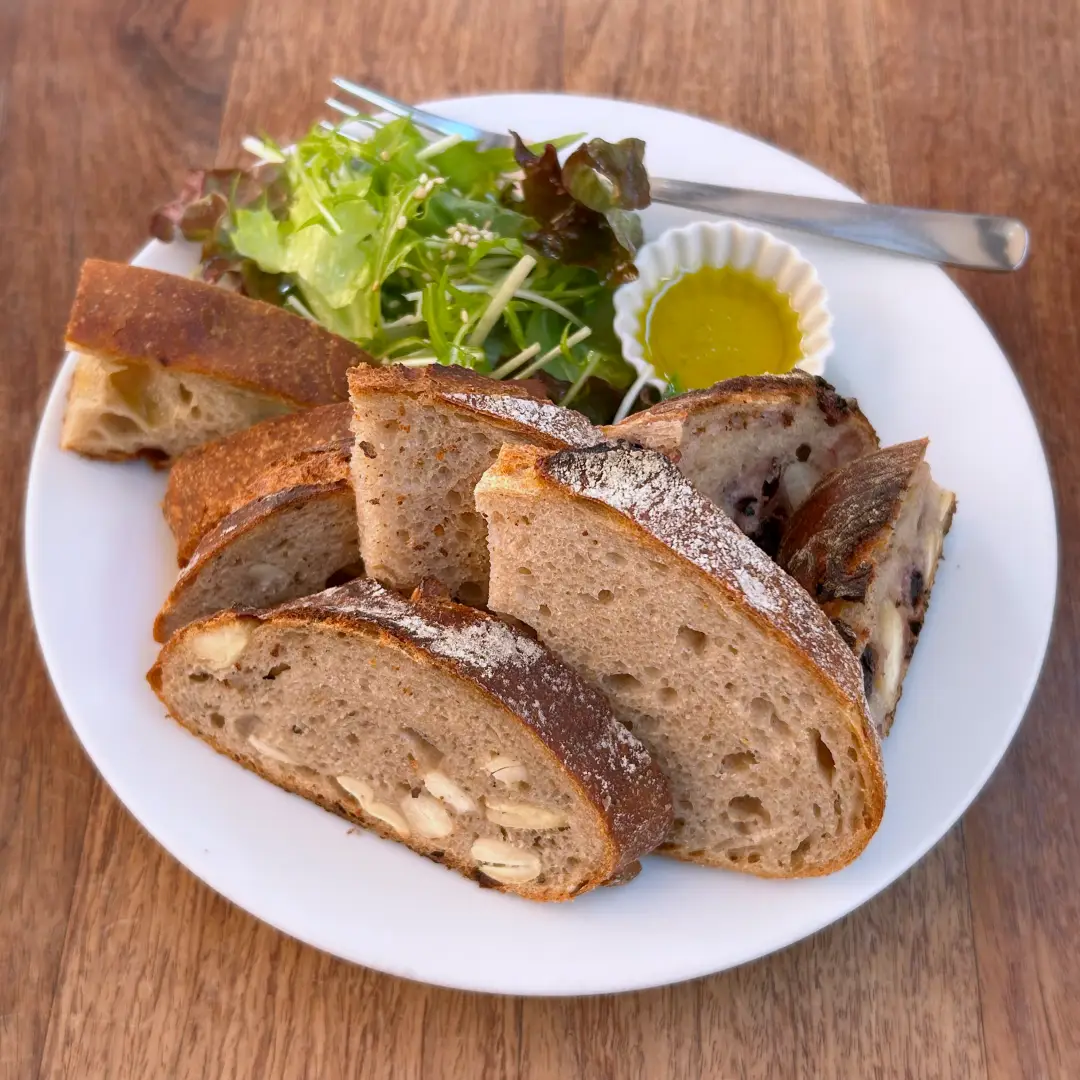 小麦の甘さを感じるパン。しっとりしていてやわらかい。こちらもオリーブオイルがめちゃ合う。