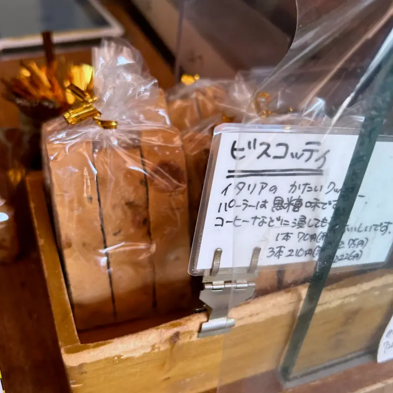 おみやげに、ビスコッティを購入。歯が弱い人には要注意の硬さでしたが、カフェオレに浸けながら楽しみました。パンもテイクアウトすればよかったです。