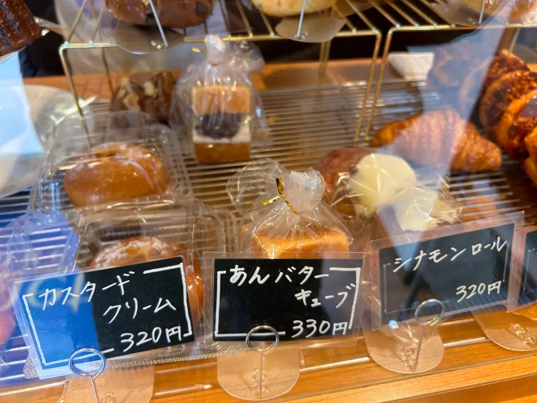 ブリオッシュ、デニッシュ、生食パン…クロワッサンサンドは横の冷蔵ケースに並んでいました。奥の厨房では次々とパンを焼き上げているのが見えました。