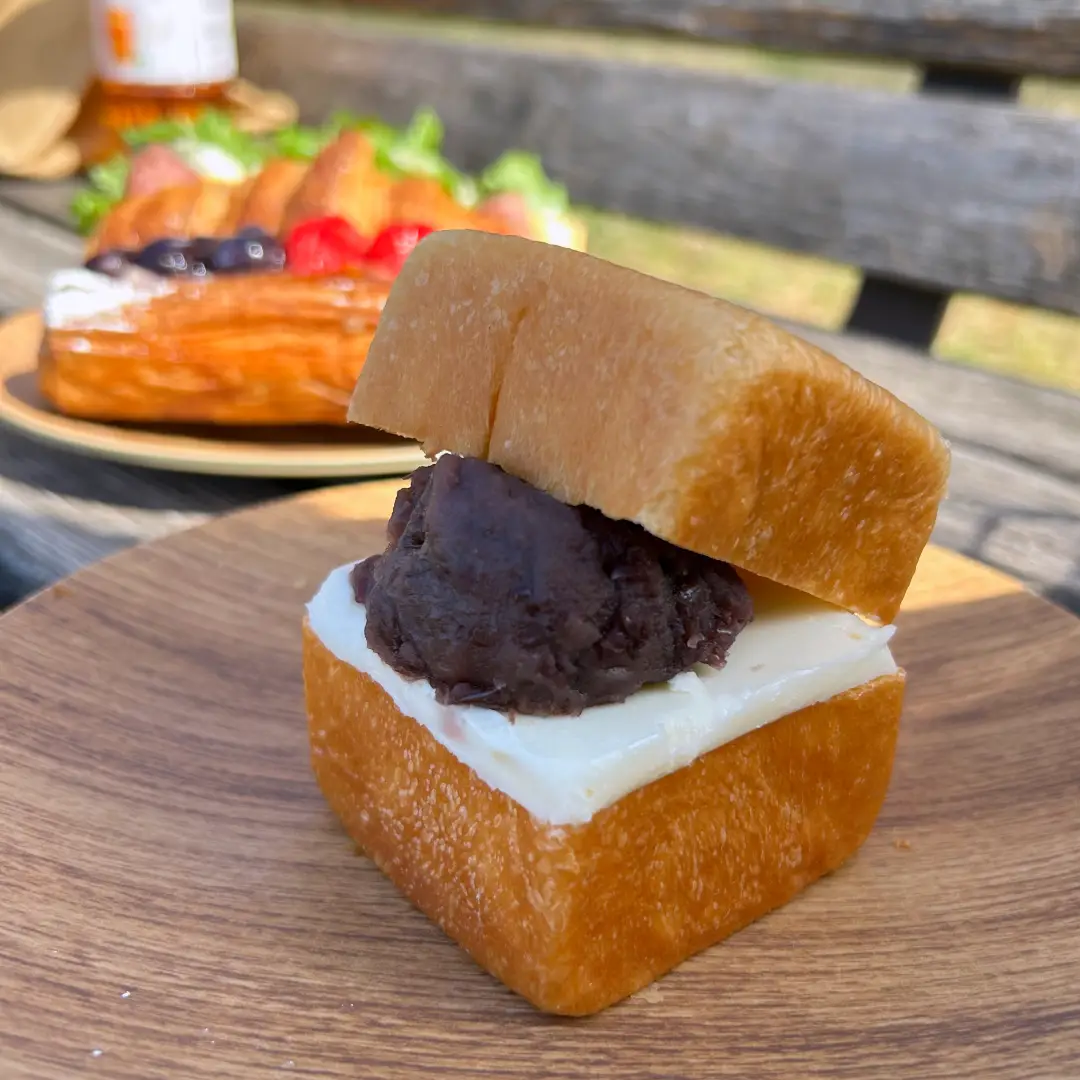 見た目が最高にかわいい。小さな角形のきめ細やかなブリオッシュに、有塩バターとほっくりつぶあんをサンド。