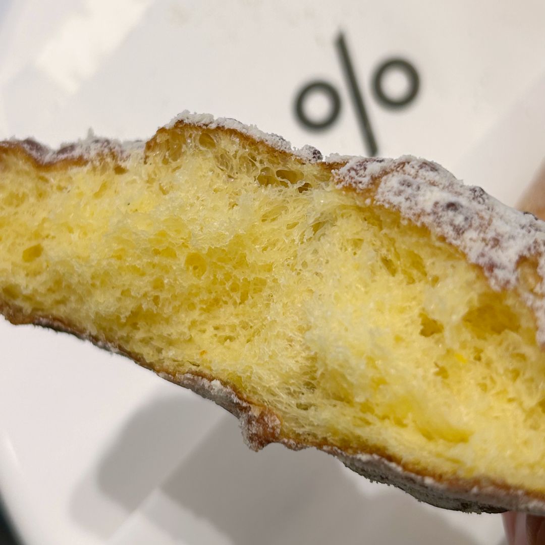 とってもやわらか&ふわもちの生地。粉砂糖が全体に降りかかっていて甘め。エスプレッソとよく合いました。