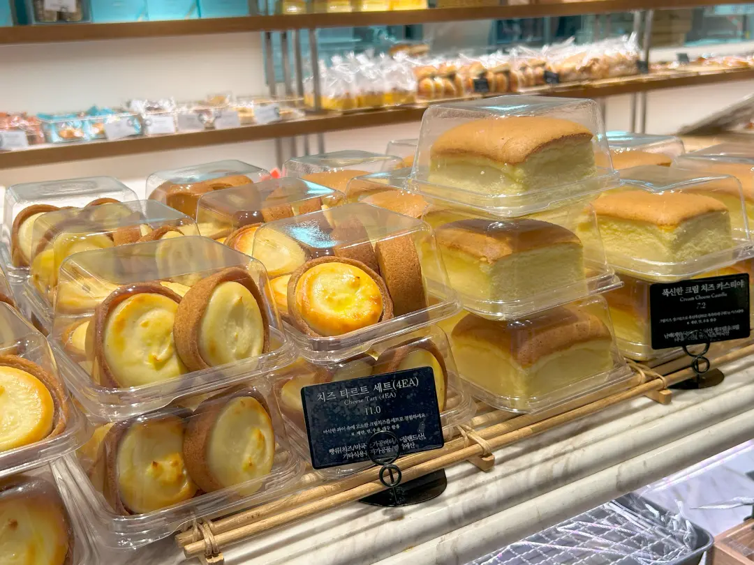このあとホテルにチェックインして、夕飯を食べに行く予定だったのでパンひとつにしましたが、4個入りのチーズタルトや、台湾カステラっぽいチーズカステラもとてもおいしそうで気になりました。