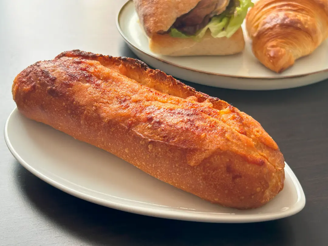 バゲットはわしわし系の食感。結構塩気ありの明太子がたっぷり挟まっています。辛味もそれなりにあり。明太バターが表面にも塗られています。これでパンが食べられそう笑。