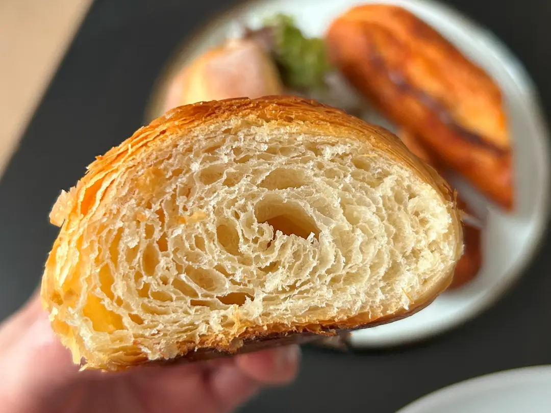 定番&オススメ。やや細身のフォルムで、中の生地は比較的詰まってますが、食感はふんわり系。バターが香ばしくて、やや甘め。サンドにも合いそう。