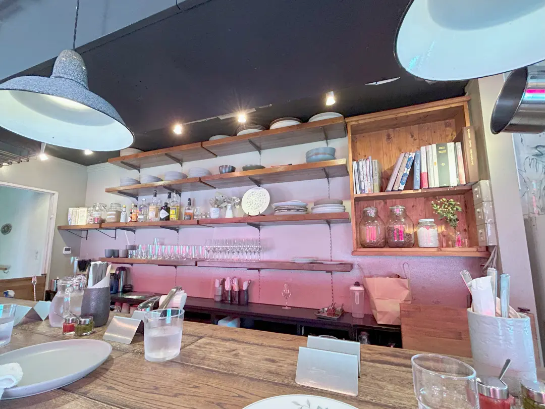 同じく代々木上原のフレンチビストロ「メゾン サンカントサンク(MAISON CINQUANTECINQ)」の姉妹店として2022年11月にオープン。フランス・パリで定着している「ピタサンド」をモデルとしているそうで、ディナーは中東の食事とワインやカクテルを楽しめるビストロスタイルになっています。