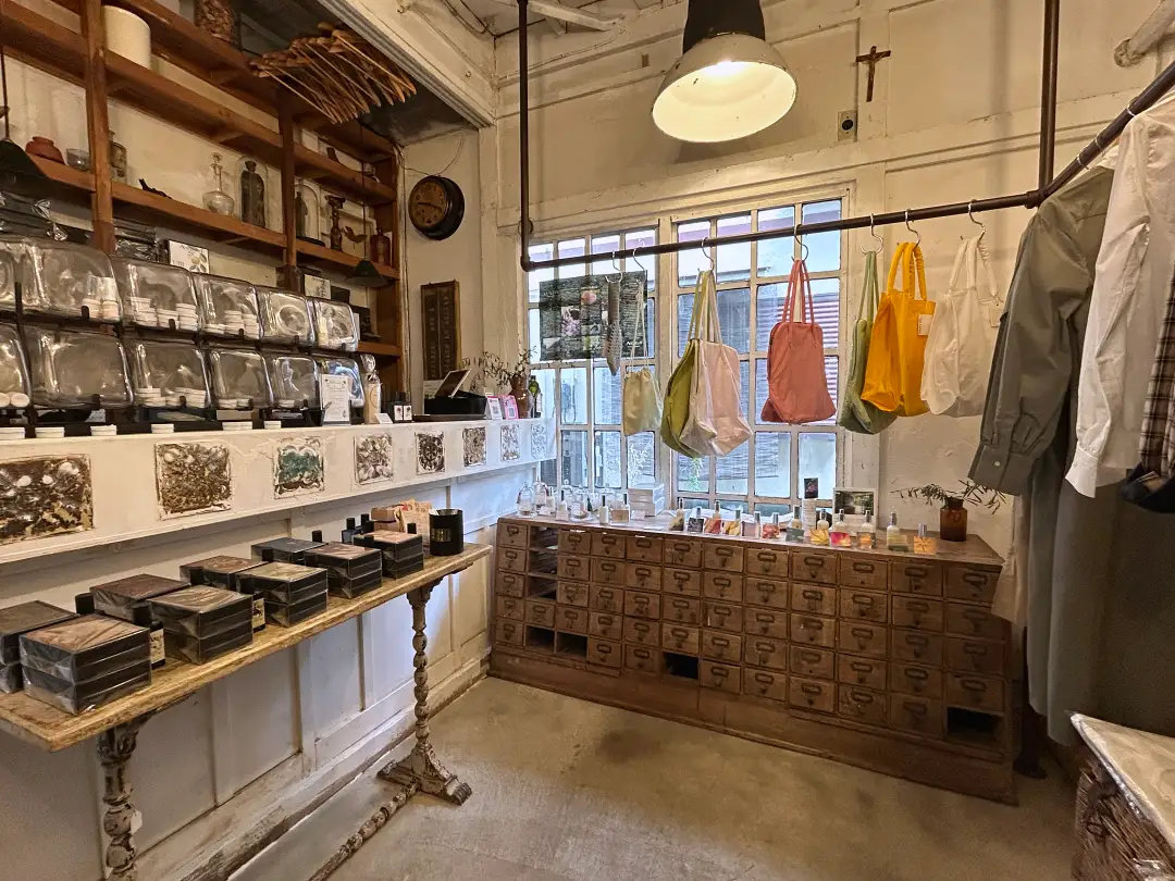 入口を入ってすぐのスペースには、器、衣類、アロマなどの雑貨などが並び、まるでギャラリーのよう。