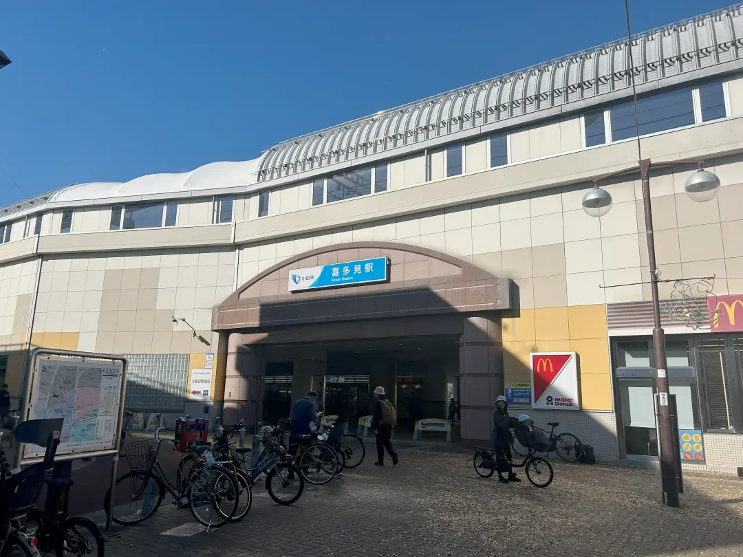 場所は小田急線 喜多見駅・南口から徒歩3分。駅前の静かな通りをまっすぐ歩いていきます。