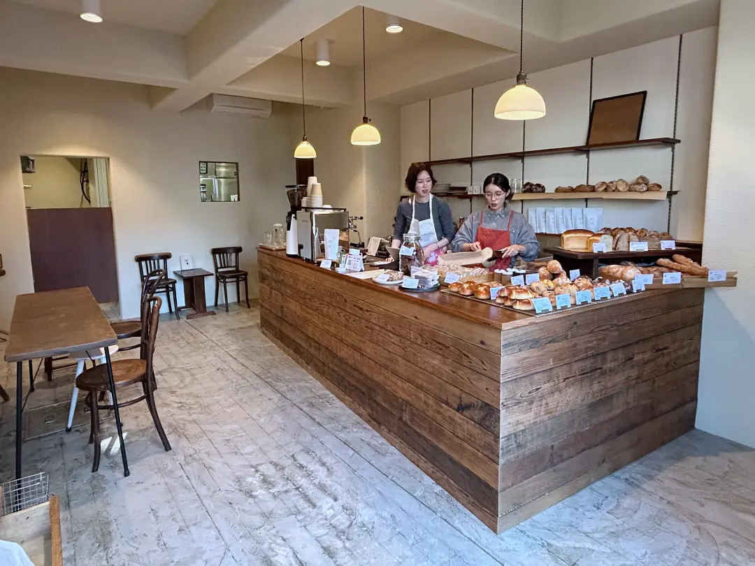 オーナー兼ベーカーの矢部美穂さんに加えて、ペイストリーシェフ、バリスタの三人によるベーカリーカフェ。厳選した国産小麦を自家製粉、自家製酵母を使い、AOSANやPARKLET BAKERYで学んだ技術を生かしてパンを焼き上げています。
