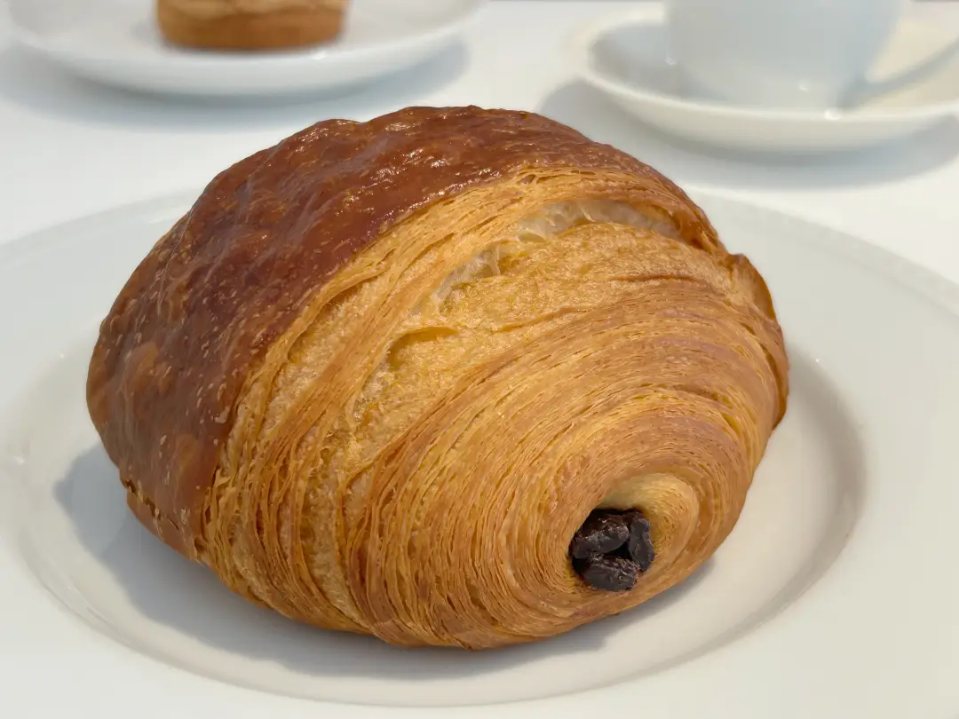 クロワッサンと迷いましたが…今回はパン・オ・ショコラを選択。こちらも大きめで、高さもあり。巻きがしっかりしていて、食べ応えのある一品。