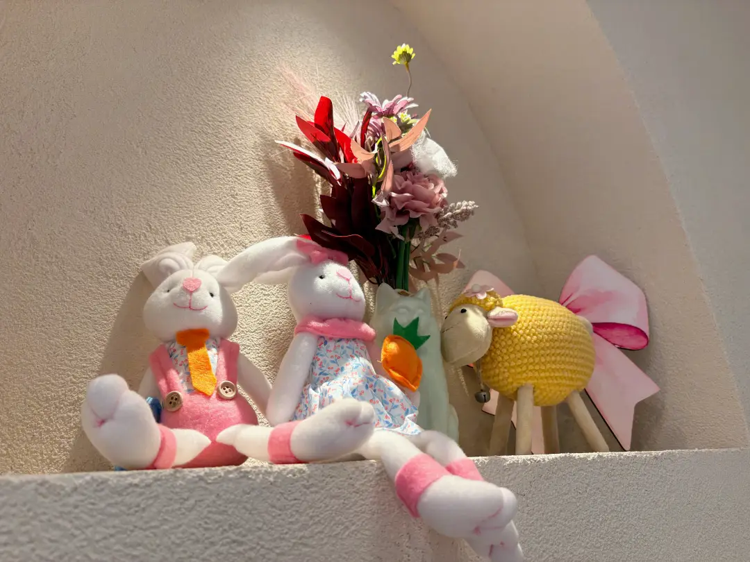 入口までの通路にも席があって、膝掛けが用意されているのがちょっと嬉しいポイント。ところどころにあるかわいいディスプレイが韓国カフェっぽくて好み。ただ、お客さんは圧倒的に若い女子が多くて、ちょっとだけ気恥ずかしいかも。まぁ、あまり気にしないタイプなので大丈夫なんですけどね(笑)。